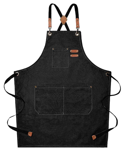 The apron includes adjustable crossback straps that fit any size between a Medium to XXL. It has 3 pockets and high quality stitching. You will not only be cooking great but will look the part also!